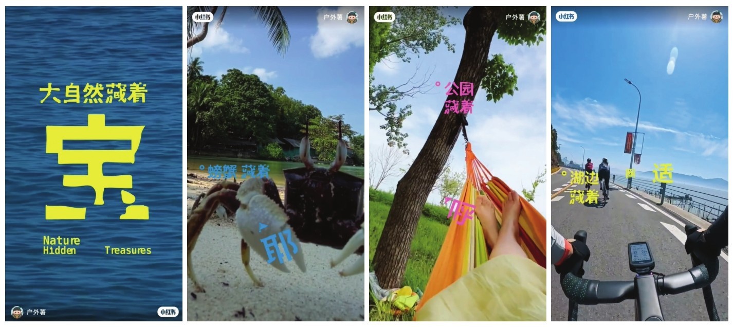 创意短视频是指内容以创新事物和意识为主,或采用了独特表现手法的短视频作品。创意短视频的核心在于创意性,主要通过独特的视角、新颖的故事情节或巧妙的表达方式吸引观众,激发观众的想象力和创造力,以传递特定信息。图1-26所示为小红书平台发布的关于“大自然藏宝节”活动的创意短视频,利用“××藏着××”的句式,以及独特的文字特效,带给观众出乎意料的惊喜感,激发观众的参与兴趣,同时也强调了该活动的趣味性和探索自然的热情,成功吸引了大批观众的关注。