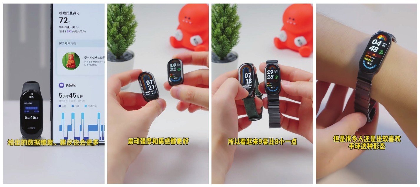 随着电商市场规模逐年扩大,产业生态逐渐形成,许多商家或个人开始利用短视频来销售商品。为此,很多短视频平台开发了专门的短视频电商销售功能,供有销售需求的商家或个人使用。电商短视频通过直观的视觉展示和详细的商品介绍,能够帮助消费者更好地了解商品的外观、功能、使用方法等,提高购买率。图1-23所示为一款智能手环电商短视频,展示了智能手环的外观、佩戴效果、健康监测功能、运动数据记录等,激发了消费者的购买欲望。