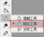 1 打开照片。在工具栏中选择“锐化工具”选项 。