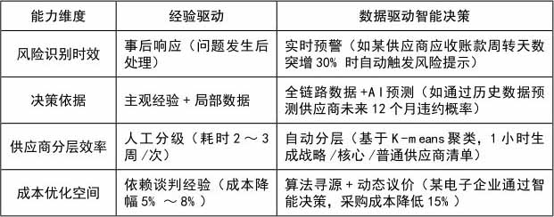 表1-2 供应商管理靠经验VS数据驱动的智能决策对比