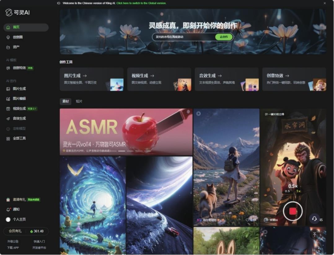 可灵AI的界面采用了简洁的设计风格,使得用户能够迅速理解并上手使用。无论是专业用户还是初学者,都能在短时间内找到所需的功能和工具,如图1-4所示。