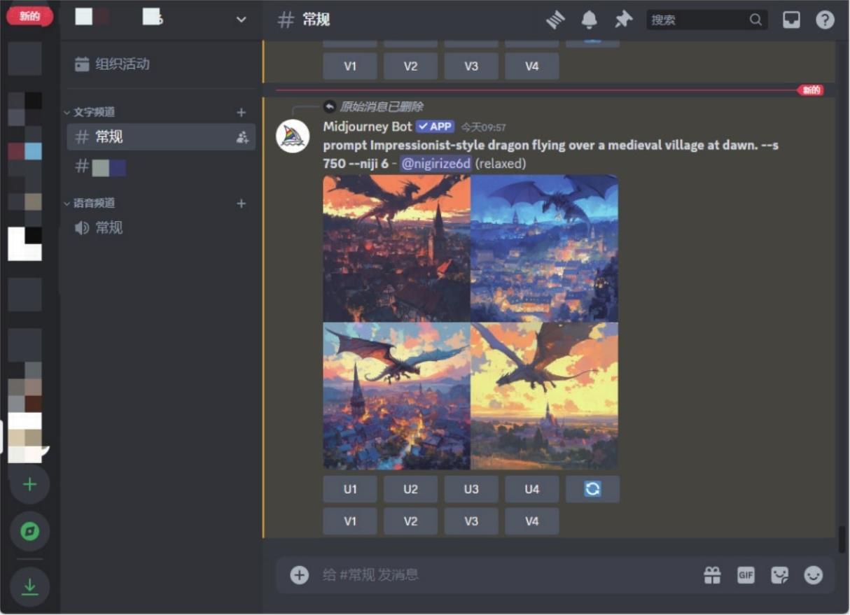 用户只需加入Midjourney的Discord服务器,在聊天框中输入详细的文本描述,即可生成对应的图像。生成的过程是交互式的,用户可以根据初步结果调整描述,不断优化和迭代,直到获得满意的图像。图1-7所示为Midjourney绘制的作品。