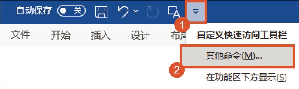 1 单击Word【快速访问工具栏】最右侧的下拉按钮,选择【其他命令】命令。