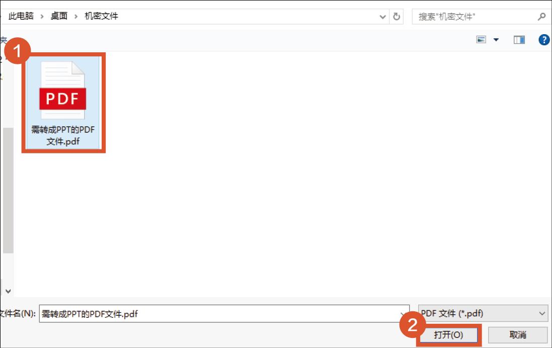 3 在弹出的【打开】对话框中选择需要转换的PDF文件,单击【打开】按钮。