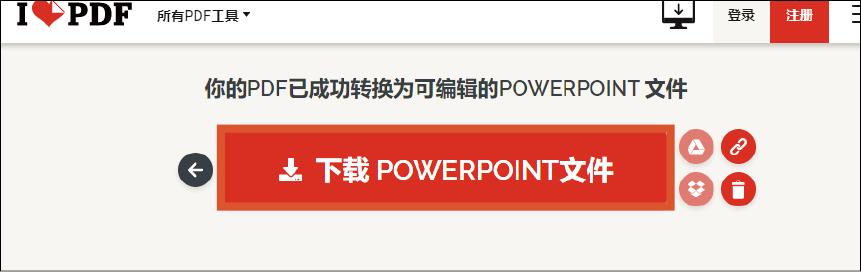 5 待文件转换完毕,单击【下载POWERPOINT文件】按钮即可得到转换后的PPT文件。