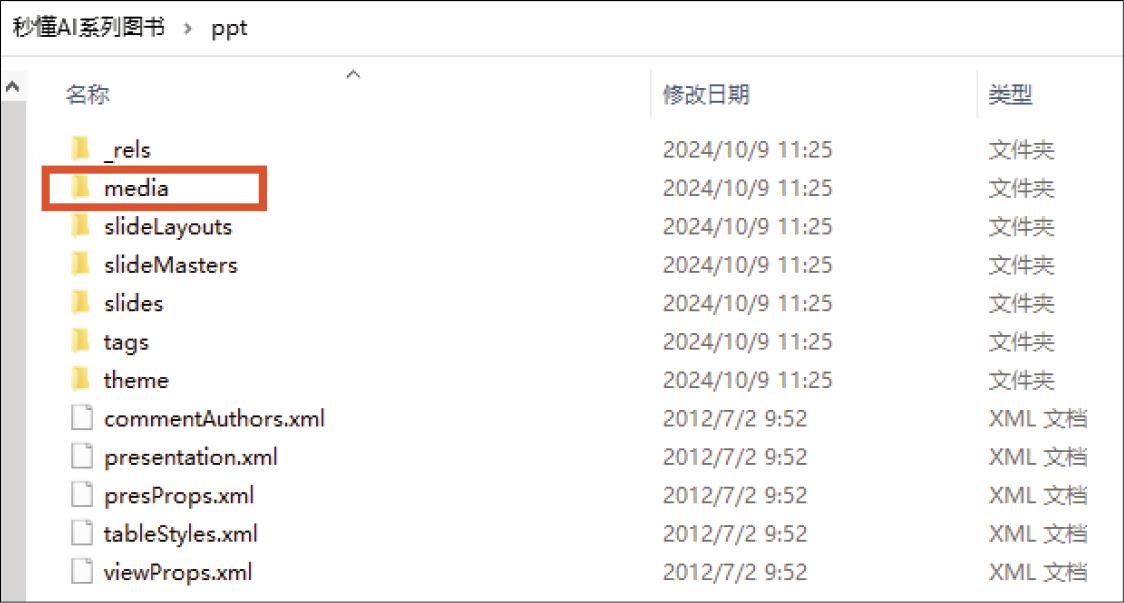 3 解压该文件,依次打开“ppt”\“media”文件夹。