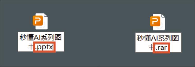 2 将文件后缀名由“.pptx”改为“.rar”。