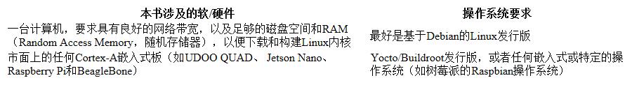 本书的前两章会帮助你理解驱动程序的基础知识,为学习Linux内核的漫长旅途做准备。之后本书将会涉及Linux子系统基础上的驱动开发,比如内存管理、工业输入/输出(Industrial Input/Output,IIO)、通用输入/输出(General-Purpose Input/Output,GPIO)、中断请求(Interrupt Request,IRQ)管理以及集成电路总线(Inter-Integrated Circuit,I2C)和串行外设接口(Serial Peripheral Interface,SPI)。