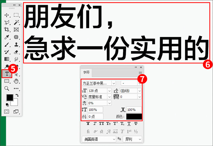 ,在图像窗口中输入需要的文字。在“字符”面板中设置文字为黑色,并选择合适的字体和字号。