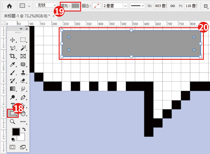 ,在属性栏中,将填充颜色设置为中灰色(154,154,154),然后绘制一个矩形。