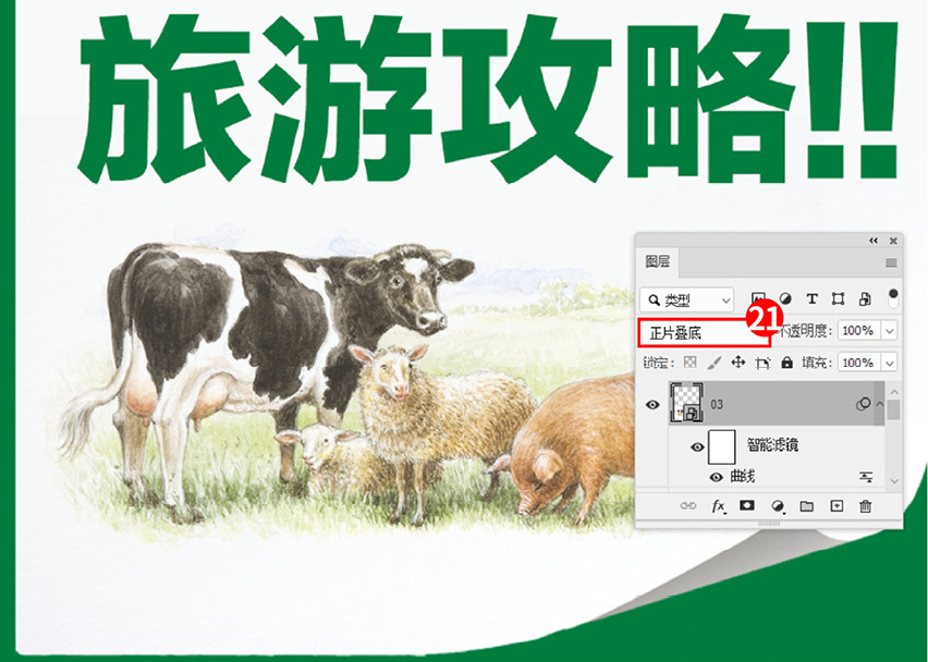 8 在“图层”面板中将03图层的混合模式设置为正片叠底,即可完成个性趣味封面设计。