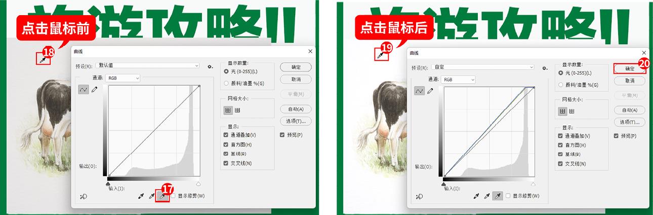 7 选择“图像 > 调整 > 曲线”命令。在弹出的对话框中单击“在图像中取样以设置白场”按钮。在03素材的背景部分单击鼠标左键,使背景变白。然后单击“确定”按钮,确认操作。