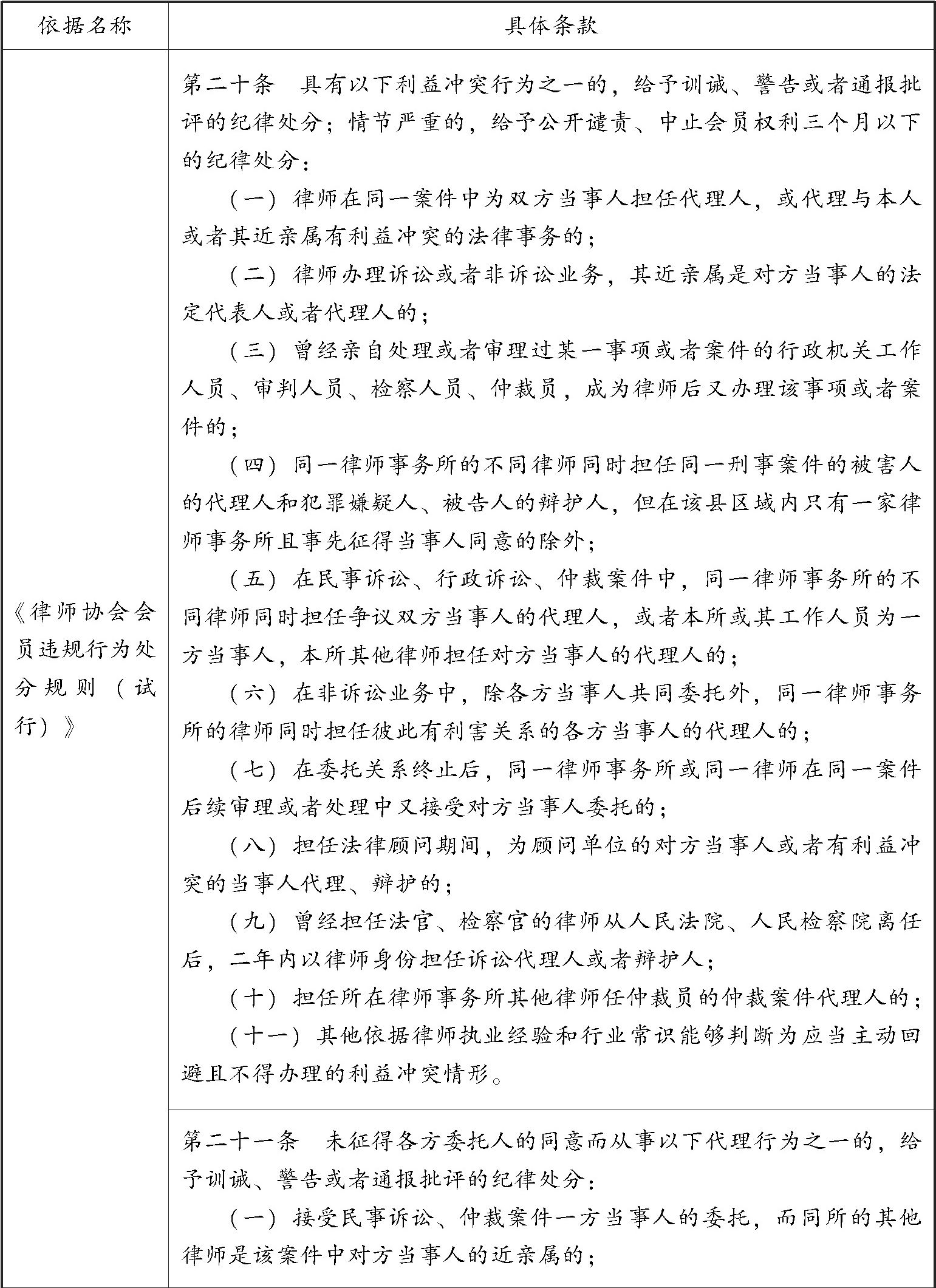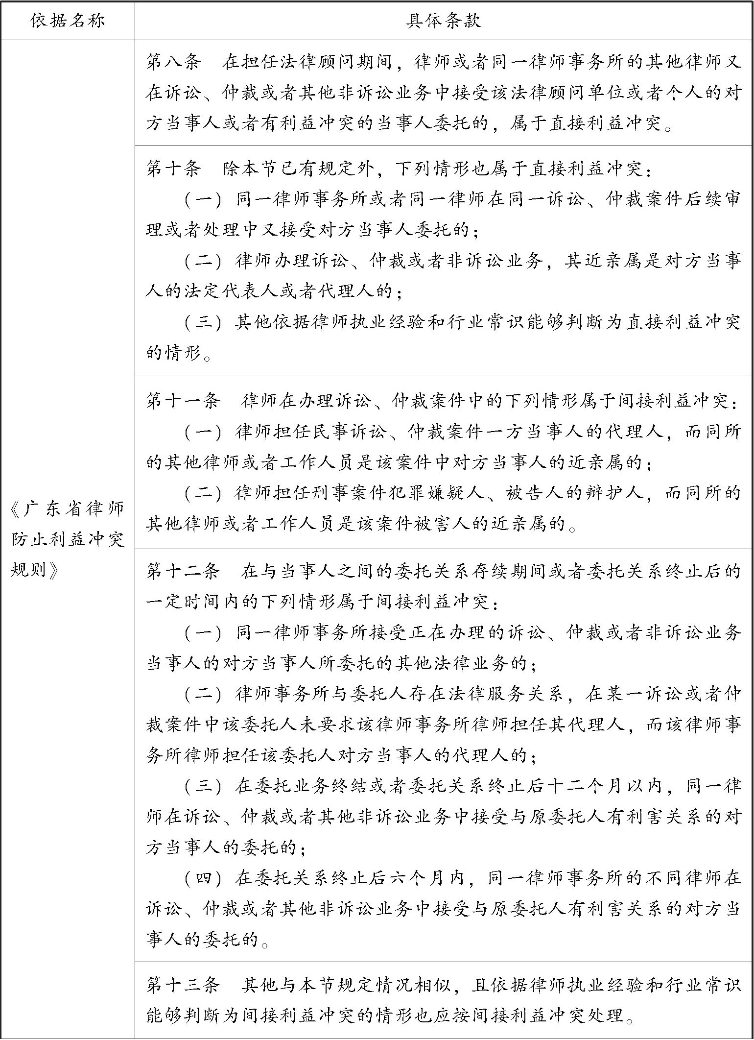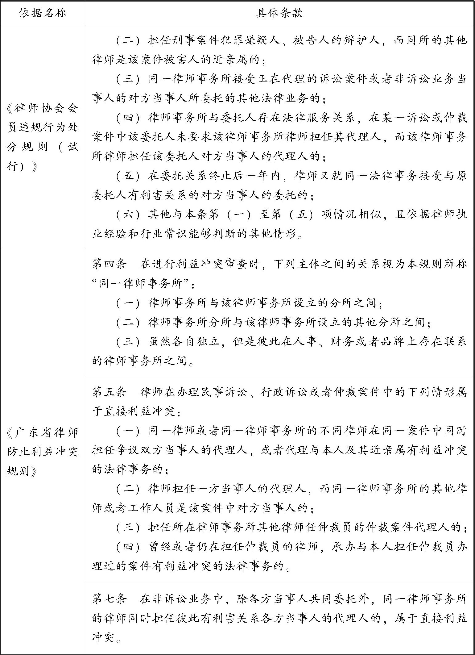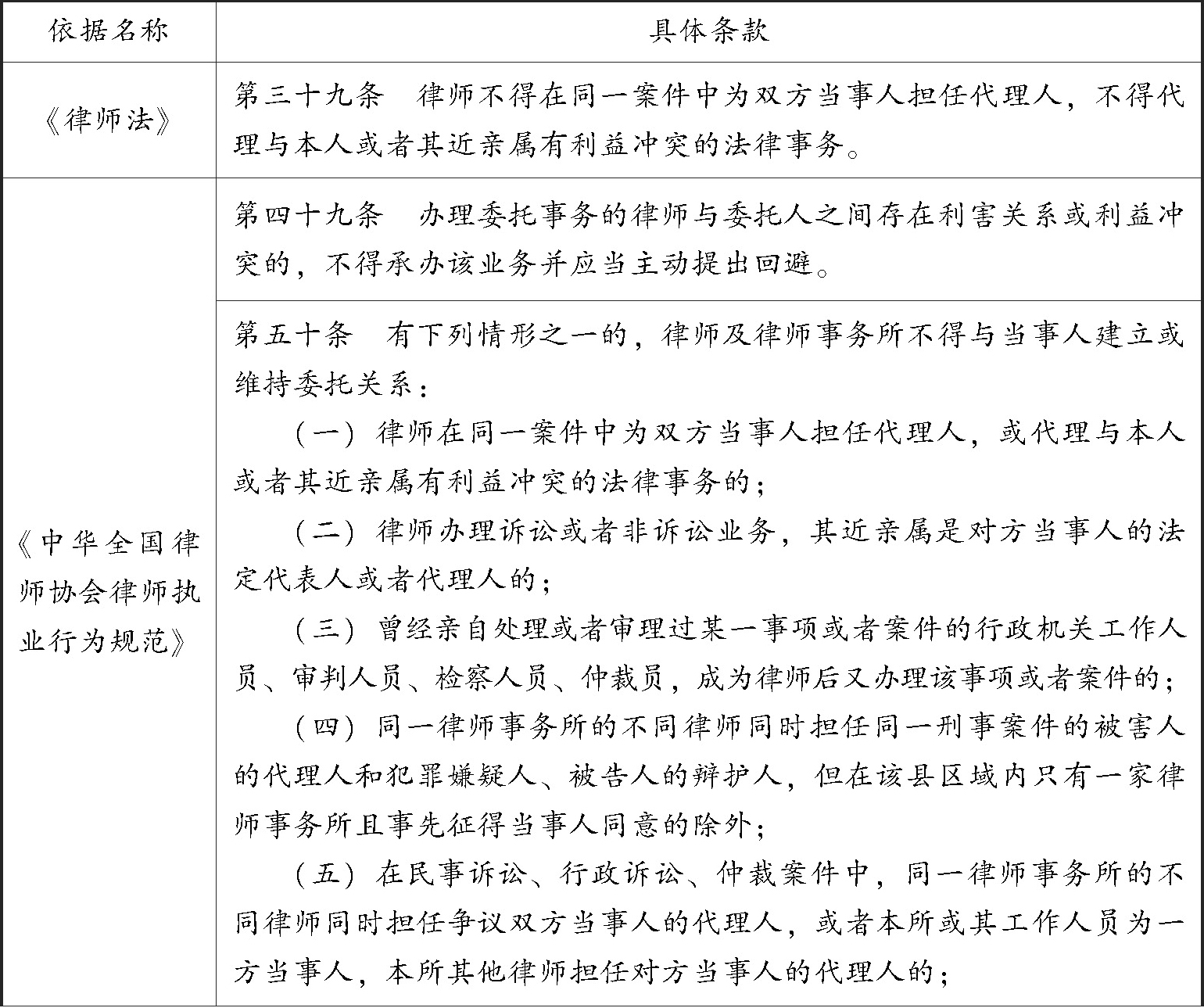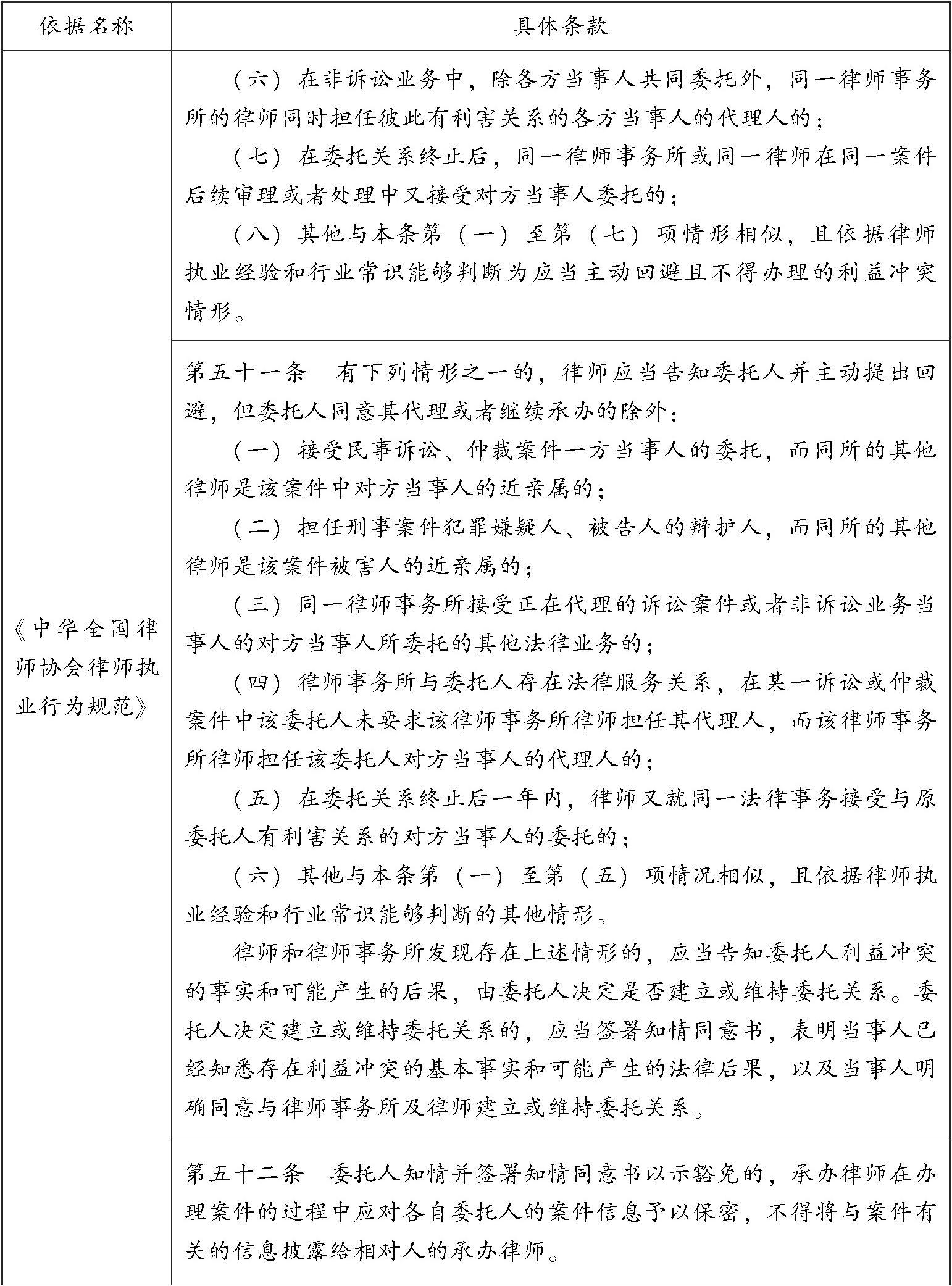 表3 律师接受委托的利益冲突情形相关法律规定