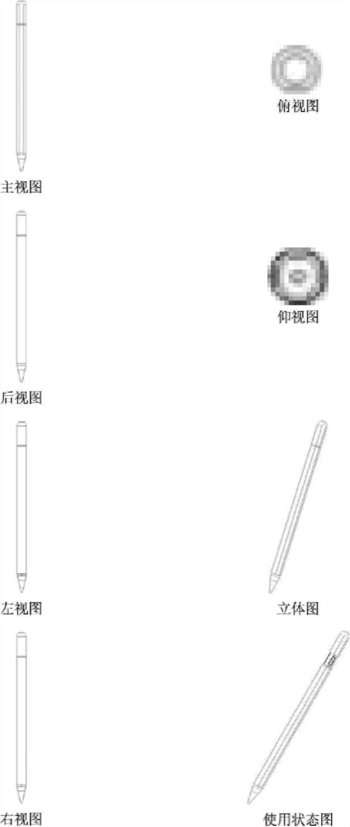 一审法院认为:本专利为立体产品“主动式电容笔(Z36)”,授权公告文本中包含六面正投影视图、立体图及使用状态图等8张附图。综合8张附图及电容笔产品的一般消费者常识可以确定,本专利设计的笔身为六棱柱形,笔帽处于拉开状态时为使用状态,使用状态拉开笔帽露出部分为与笔身六棱柱形相对应的直径略小的六棱柱形,即各幅视图已清楚显示了使用状态时本专利保护产品的外观设计,符合专利法第二十七条第二款的规定。深圳某公司所主张的使用状态中的主视图、后视图、左视图、右视图、俯视图和仰视图并非外观设计授权审查的必要视图,其关于本专利不符合专利法第二十七条第二款规定的主张不成立,一审法院不予支持。