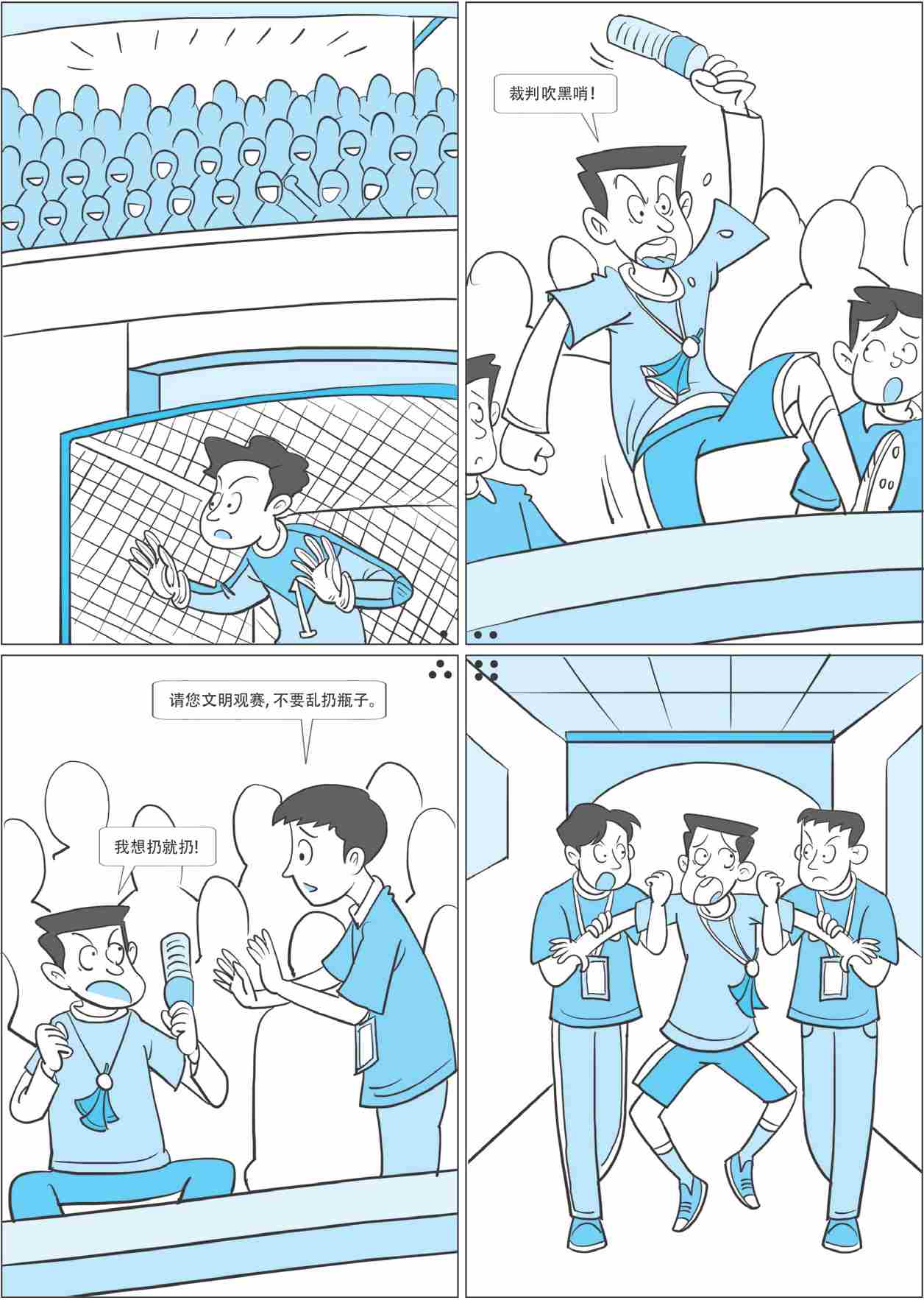 (三)服从安全管理,不得展示侮辱性标语、条幅等物品,不得围攻裁判员、运动员或者其他工作人员,不得投掷杂物。