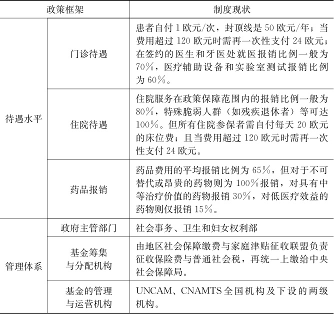 表3-1 法国普通医疗保险计划(CNAMTS)的政策框架与制度概况
