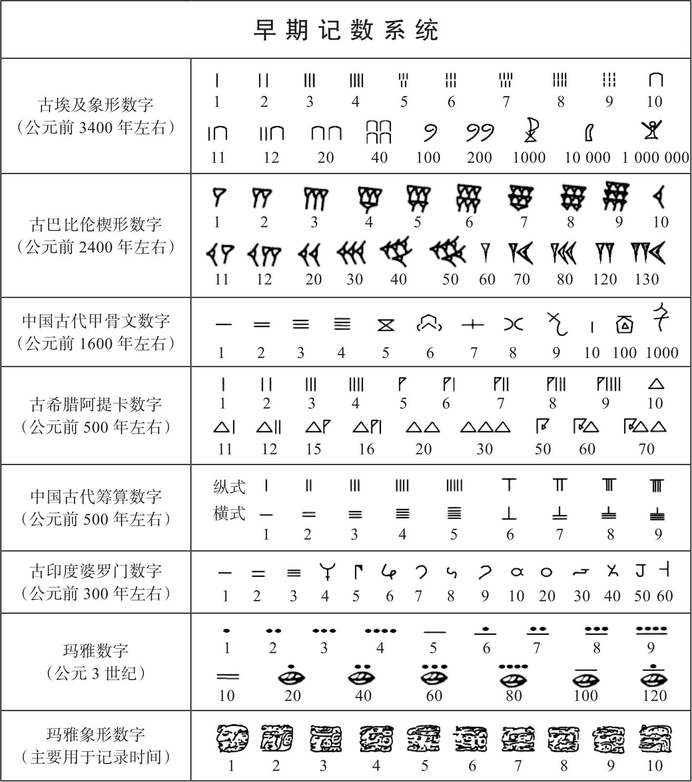 最后,图2-16展示了世界几个主要早期文明的“记数系统”,以供参考