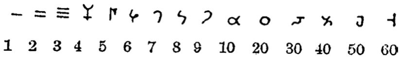 在公元前30世纪到公元前20世纪之间,古巴比伦人发展了应用定位原则的六十进位制的数系。但是,这种数系是不完全的。一方面,60以上的数依定位原则写出;另一方面,60以内的数则按照以十进制的简单分群数系写出,例如: