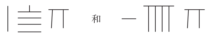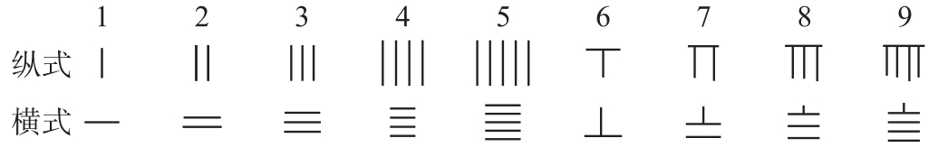 在筹式上摆放数字的方法规定为:个位、百位、万位……上的数用纵式,十位、千位、十万位……上的数用横式,纵横相间,以免发生误会;又规定用空位来表示零。例如,197和1907的筹式分别表示为