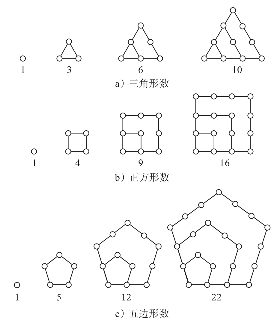 图3-1 三角形数、正方形数和五边形数