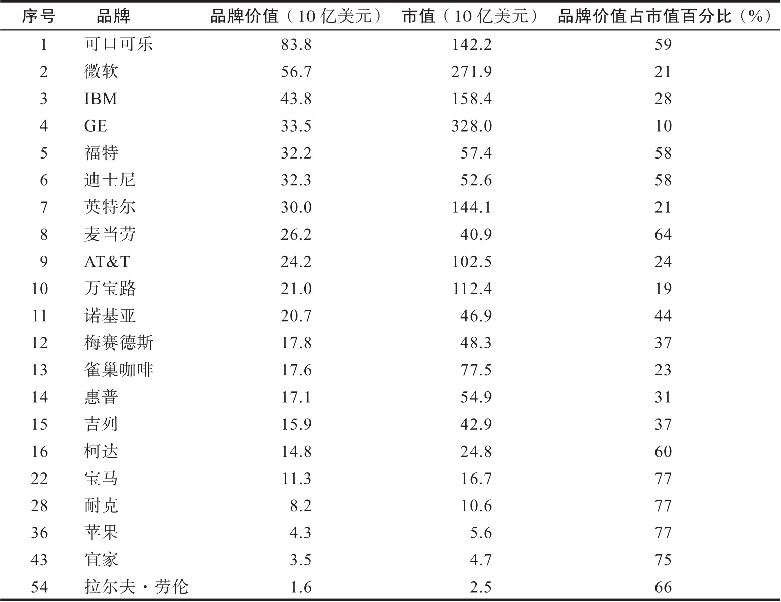 表1-4 英图博略品牌咨询公司衡量的全球性品牌的价值