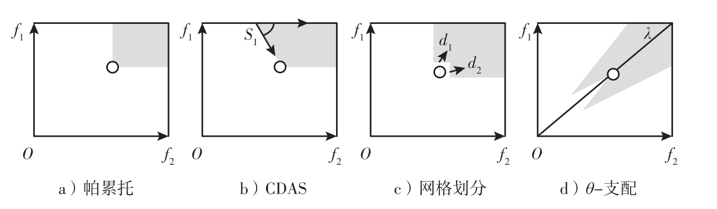 虽然帕累托支配关系能够帮助种群判断个体的优劣,但当目标个数增加时,这类方法的性能受到了严重的支配阻碍。在一个目标数为