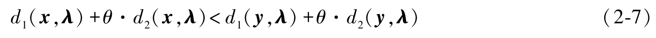 当且仅当上述公式得到满足时, x θ -支配 y 。其中, λ 是权重向量, θ 是惩罚系数, d 1 ( x , λ )和 d 2 ( x , λ )的计算请参考文献[86]。