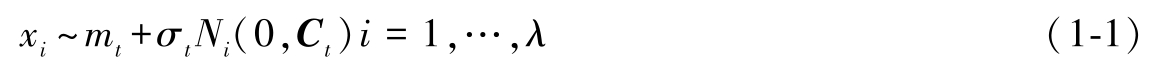 第 t 次迭代的变异采样的实例示意图如图1-7所示,变异采用的正态分布可以写作