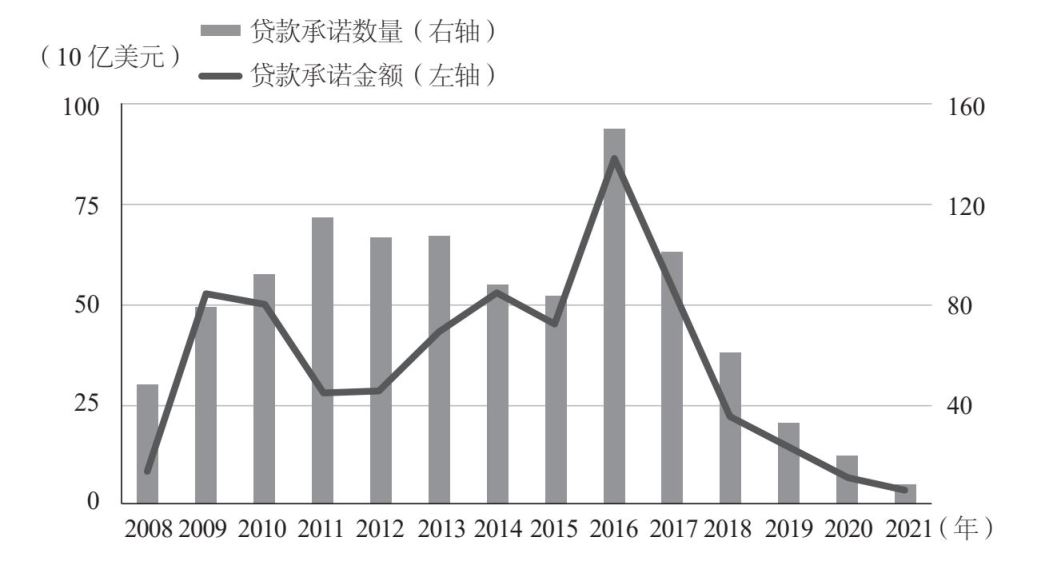受新冠疫情和地缘政治风险影响,国内金融机构对海外项目的审批和风控更加严格,明显削减了对中国企业的海外融资。以海外发展融资为例,中国两大主要发展融资机构中国国家开发银行和中国进出口银行2017年后大幅减少了向海外提供的贷款承诺(见图2—2)。同时,不仅中国海外发展融资总额下降,平均贷款承诺规模也随之下降,所覆盖的地理范围也出现缩小趋势(BU Global Development Policy Center,2023)。此外,美西方通过炒作债务、人权和环境等问题,对中国企业进行抹黑,加剧了这些企业在东道国面临的各种挑战。发展中国家的财政困难也增加了中国企业海外项目的回款压力。