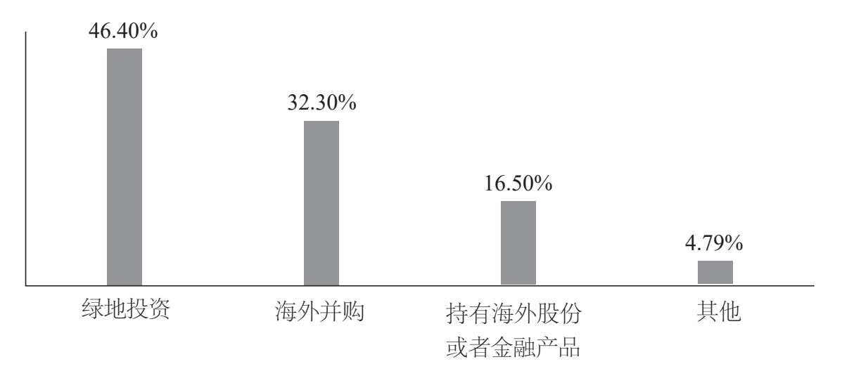 在中国企业的对外投资中,投资方式的选择呈现出多样化的发展趋势。特别是在“一带一路”倡议的推动下,绿地投资和海外并购已成为中国企业走向国际市场的主要投资方式,占比分别为46.4%和32.3%(图3—1)。绿地投资,即直接在海外建立新的生产或服务设施,不仅帮助中国企业在当地扎根,而且在多个领域发挥着至关重要的作用。这种投资方式通常需要企业在目标市场进行长期的战略布局,并且能够控制更大程度的业务运营,确保符合中国企业在全球化过程中对技术、品牌和市场控制的需求。与此同时,海外并购进一步推动了中国企业的全球化进程。海外并购成了企业扩展海外市场份额、获取先进技术和知名品牌资源的重要途径。在全球竞争日益激烈的背景下,单纯依赖新建项目的绿地投资已无法完全满足企业全球扩张的速度需求。通过并购,中国企业不仅能够迅速获取所需的市场份额,还能利用并购对象的资源和品牌优势,提升自身的全球竞争力。此外,海外并购还能有效避开某些市场进入壁垒,特别是在一些需要较高技术或品牌影响力的行业中,收购当地知名企业往往是迅速切入市场并增强竞争力的捷径。除了绿地投资和并购,持有海外股份或金融产品的投资方式也逐渐成为中国企业国际化过程中的重要组成部分,占比达16.5%。通过购买海外企业的股份或金融产品,中国企业能够以较低的成本和风险参与全球经济中许多新兴行业和市场的机会,尤其是在科技、金融、消费品等领域。这种投资方式不仅能帮助企业多元化其海外投资组合,还能够提高其在国际市场中的资源获取能力。尽管该投资方式的占比较小,但这表明中国企业在全球化进程中已经逐渐开始通过资本市场实现更为灵活和高效的扩张。
