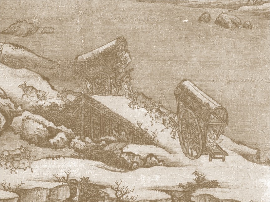 图5 五代十国 佚名 《雪溪行旅图》(局部)