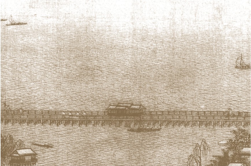 ,而三司是否批准,虹桥浮桥有没有建成,史籍并未提及,大概是未有批准。断桥通航至少还能保证漕船的安全,而若要漕船穿过由河心随波晃动的“高脚船”限定的“船道”,恐怕要出现更多撞船事故。大中祥符五年(1012),汴梁城通津门外曾新建一座汴河浮桥,不到半年时间,即因“