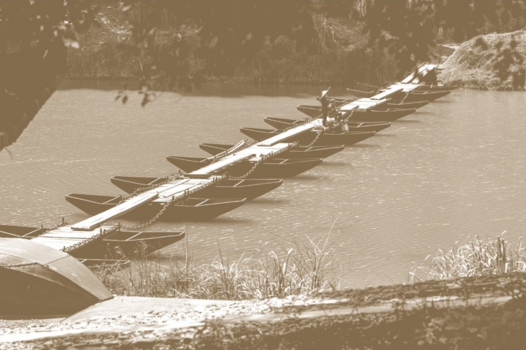 今造到小样脚船八只,若逐处有岸,即将高脚船从岸铺使渐次将低脚船排使。如无岸处,即两边用低桥脚以次铺排,中间使高脚船八只作虹桥,其过往舟船于水深洪内透放