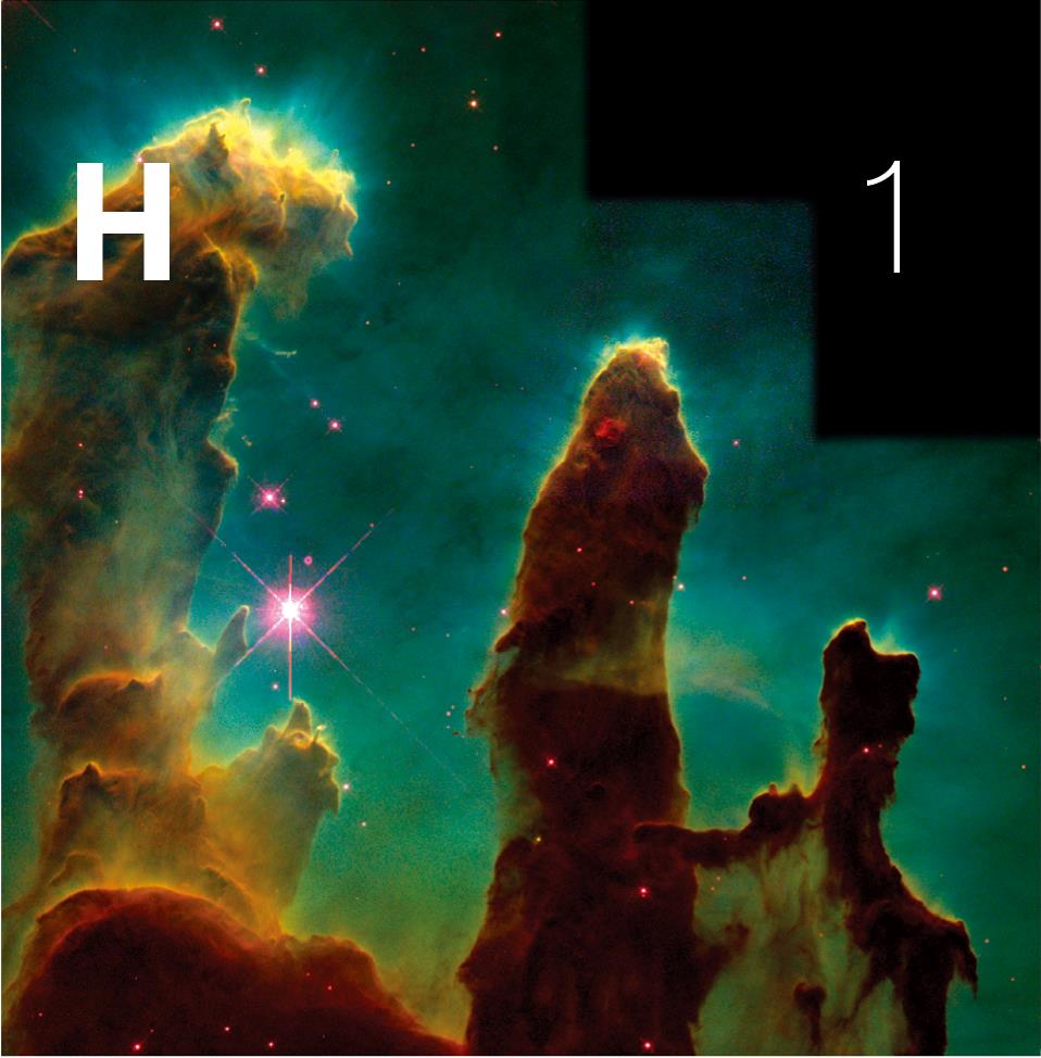 氢气是所有气体中最轻的,甚至比氦气(氦元素的原子序数为2)还要轻。因此,氢气球会飘浮在空中。氢也是宇宙中含量最丰富的元素。太阳每秒要消耗6亿吨氢,并将其转化为5.96亿吨氦。是的,每秒消耗6亿吨,日夜不休。其中,400万吨的差额则按照爱因斯坦著名的质能方程 E = m c 2 转化为能量。这就是太阳所发出的光和热,我们所有人的生存都离不开它。