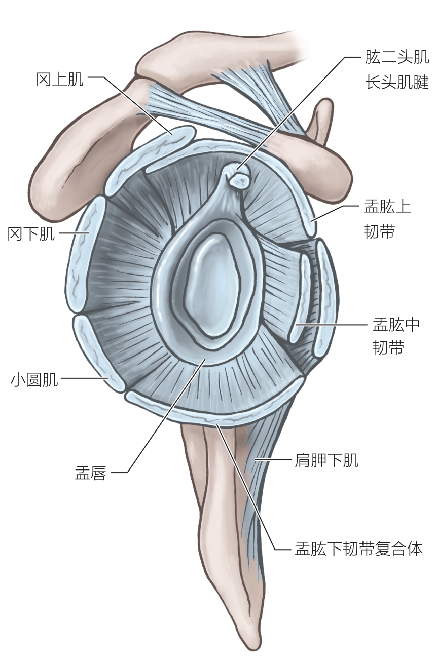 图1.4 盂窝伴盂唇和周围的韧带与肌腱