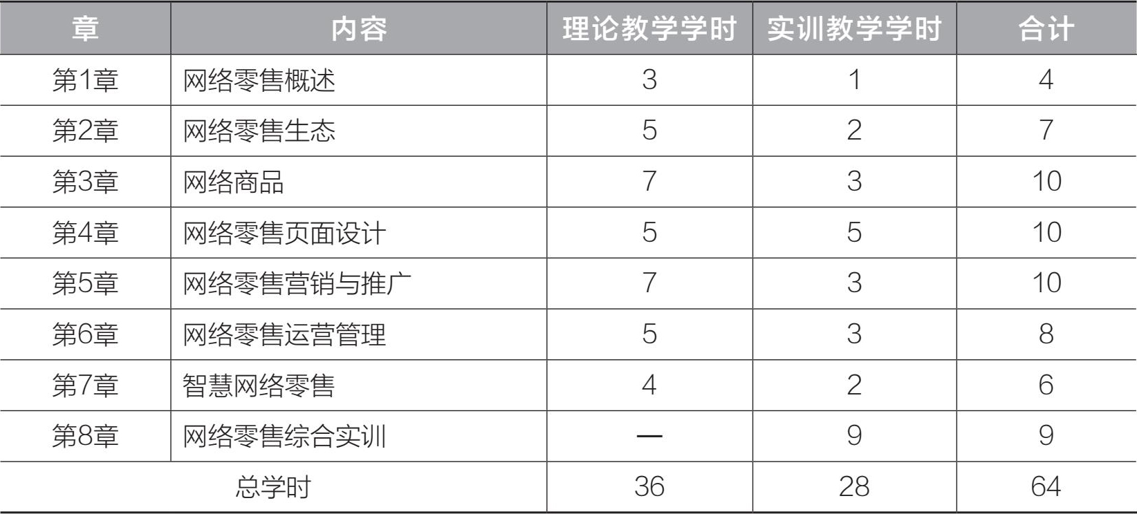 为了帮助读者更好地理解相关内容,编者针对网络零售的重难点知识录制了配套的微课视频,微课视频名称及对应小节如表3所示,用书教师如有需要,可在人邮教育社区联系本书责任编辑获取。