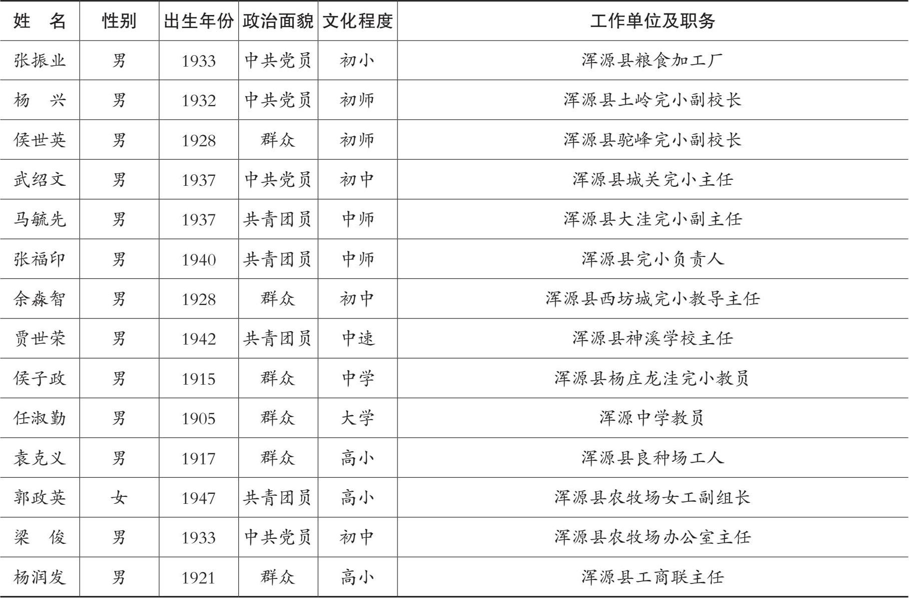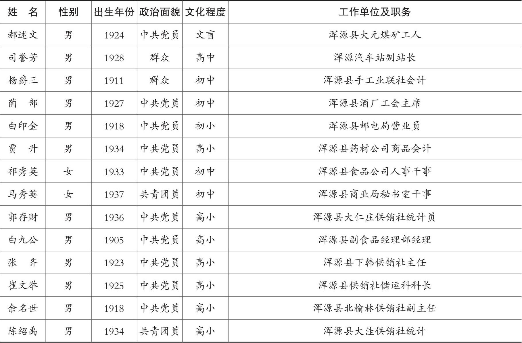 1964 年 7 月,浑源县工会第九次代表大会第二次会议召开前,浑源县工会第九次代表大会的代表缺额较多,按照《中国工会章程》关于代表替补的规定由相应单位补选了 21 名代表进行替补。具体替补名单如下: