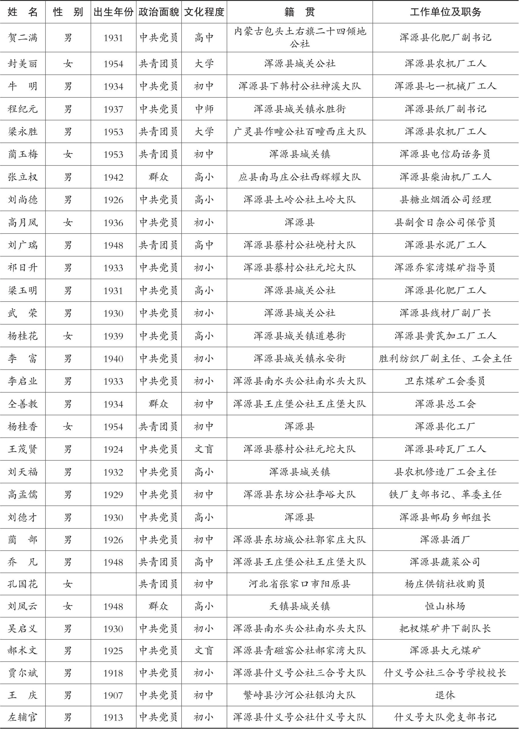 1973 年 5 月 8 日召开的浑源县工会第十次代表大会第一次会议上,根据《中国工会章程》之规定,由全体与会代表一致选举元光、王举、武二根等 37 人为出席雁北地区工会第一次代表大会代表,王庆、左辅官为出席雁北地区工会第一次代表大会特邀代表。