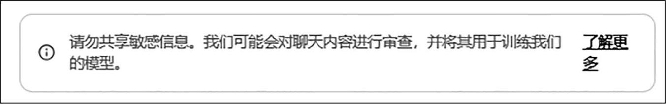 更重要的一点是,免登录用户的对话记录可能会被用于模型的改进,这一点在进行对话时,ChatGPT会在输入框下面进行提醒,如图2-4所示,但登录后可以通过设置选项来关闭此功能。