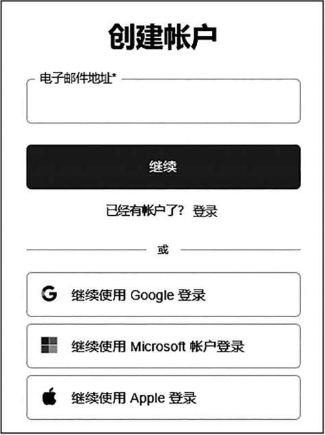 ②选择第三方服务账户注册。在下方提供的第三方入口中,选择一个进行登录,如Google或Microsoft账户。