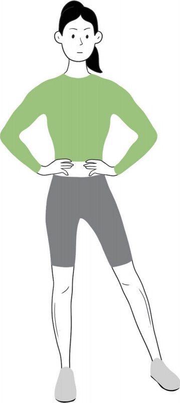第一步,正常站立,双脚与肩同宽,双手叉腰。