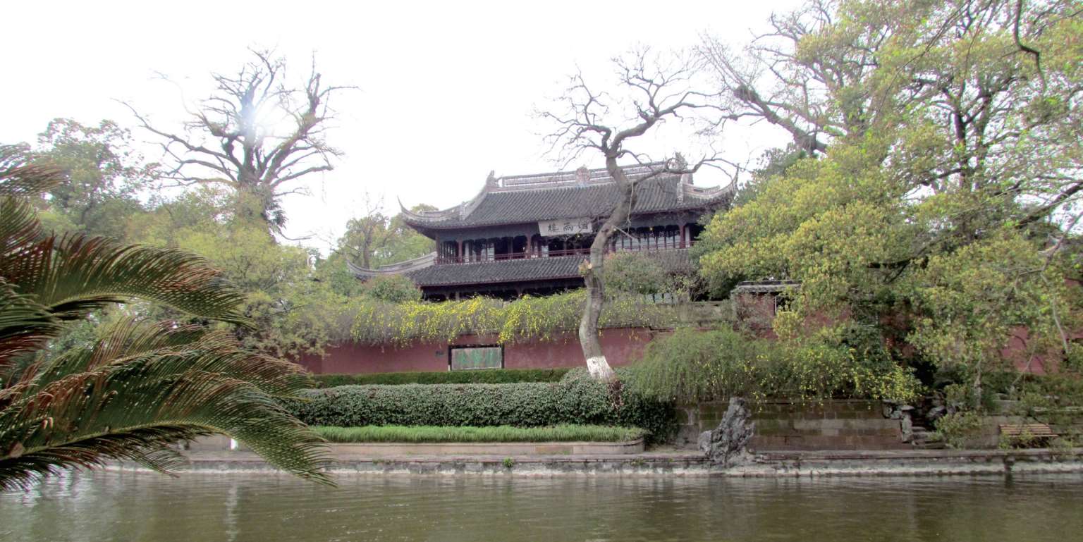 湖心岛位于南湖中心,全岛面积 17 亩。明嘉靖二十七年(1548)嘉兴知府赵瀛组织疏浚城河,将淤泥垒土成岛,次年移建烟雨楼于岛上。清以后又相继建成清晖堂、孤云簃、小蓬莱、来许亭、鉴亭、宝梅亭、东和西御碑亭、访踪亭等建筑,形成了以烟雨楼为主体的古园林建筑群,亭台楼阁、假山回廊、古树碑刻,错落有致,是典型的江南园林。