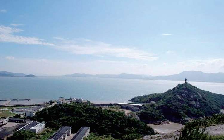 站在海拔 300 多米的佛顶山上远眺壮阔的海景,不远处的洛迦山。像一尊慈眉善目的观音菩萨安详地躺在海面之上呢!