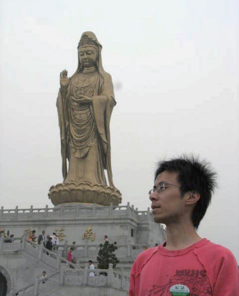 “南海观音”铜像是 1997 年建成的标志性的巨型露天铜像,从下往上看,四大天王把守天门,蓝天白云下,观音菩萨高高在上。观音脸部呈满月形,这是唐朝观音的审美,眉如柳叶,双目低垂。