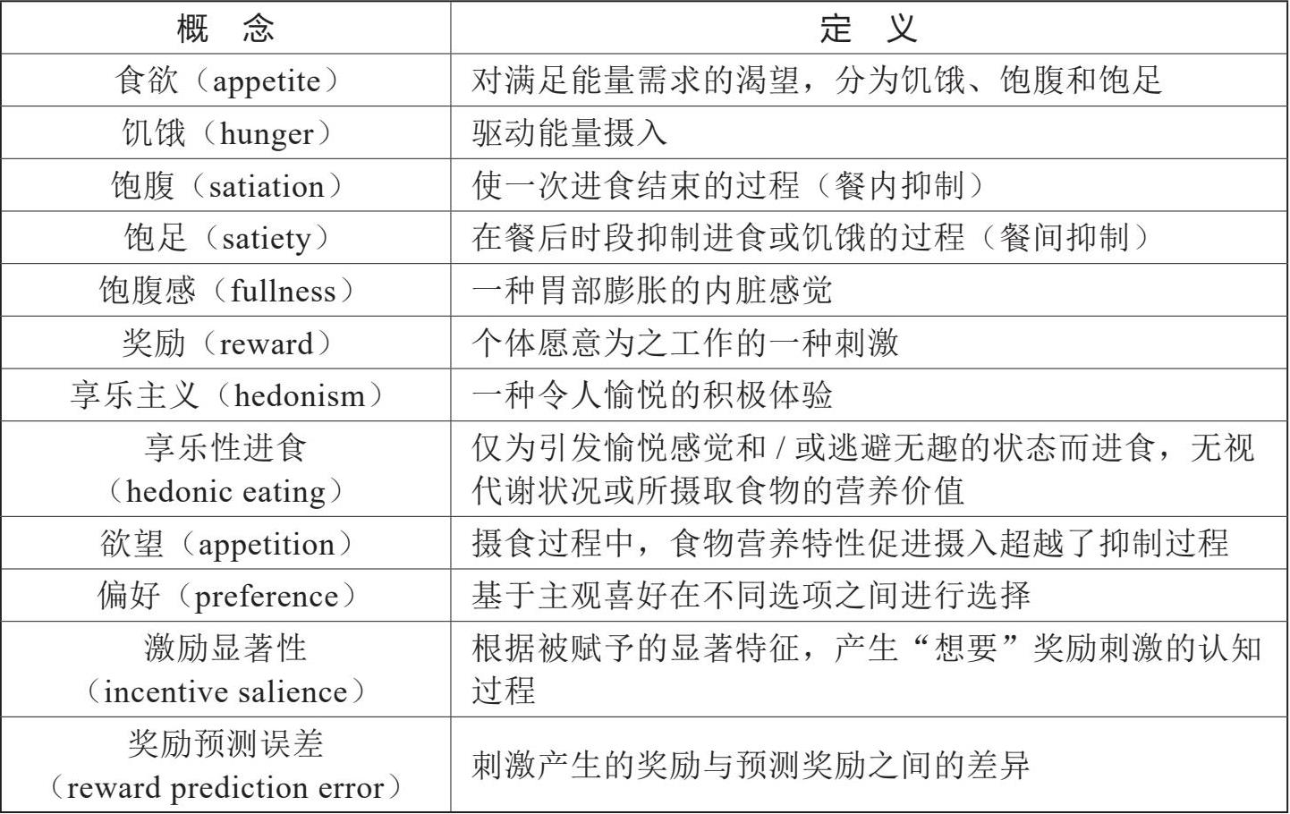 表1-1 稳态进食和享乐性进食相关概念的定义