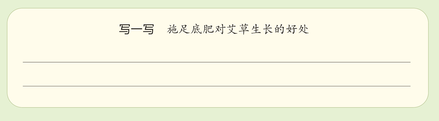 艾草小苗很脆弱,一不小心就会被折断,在烈日下很容易被晒伤,你有什么好办法保护它呢?让我们来种一种艾草、护一护艾草,并在下面写出你的好办法。