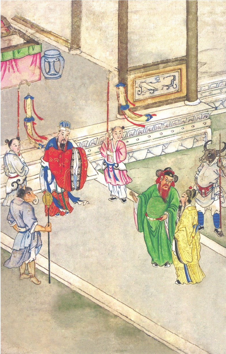 太宗正在外面观看,只见那壁厢环佩叮当,仙香奇异,外有两对提烛,后面却是十代阎王降阶而至。是那十代阎君:秦广王、楚江王、宋帝王、忤官王、阎罗王、平等王、泰山王、都市王、卞城王、转轮王。