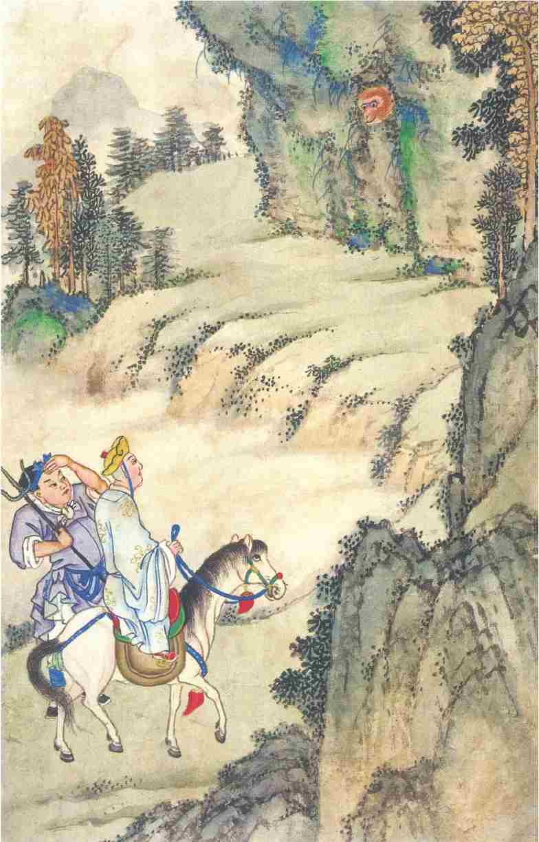 却说那刘伯钦与唐三藏惊惊慌慌,又闻得叫声“师父来也”。众家僮道:“这叫的必是那山脚下石匣中老猿。”太保道:“是他!是他!”三藏问:“是甚么老猿?”太保道:“这山旧名五行山,因我大唐王征西定国,改名两界山。先年间曾闻得老人家说:‘王莽篡汉之时,天降此山,下压着一个神猴,不怕寒暑,不吃饮食,自有土神监押,教他饥餐铁丸,渴饮铜汁,自昔到今,冻饿不死。’这叫必定是他。长老莫怕,我每下山去看来。”三藏只得依从,牵马下山。行不数里,只见那石匣之间,果有一猴,露着头,伸着手,乱招手道:“师父,你怎么此时才来?来得好!来得好!救我出来,我保你上西天去也!”这长老近前细看,你道他是怎生模样: