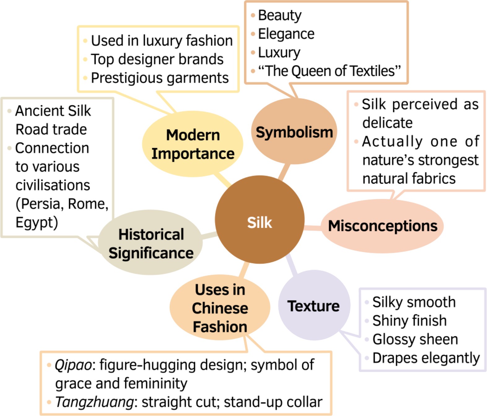 Look at the mind map below and try to introduce silk in English.