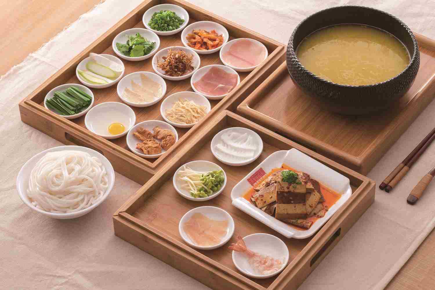 “Over-the-Bridge rice noodles” are a famous dish from Yunnan province in China. The dish has hot soup and ingredients added to it, keeping the noodles warm and tasty.